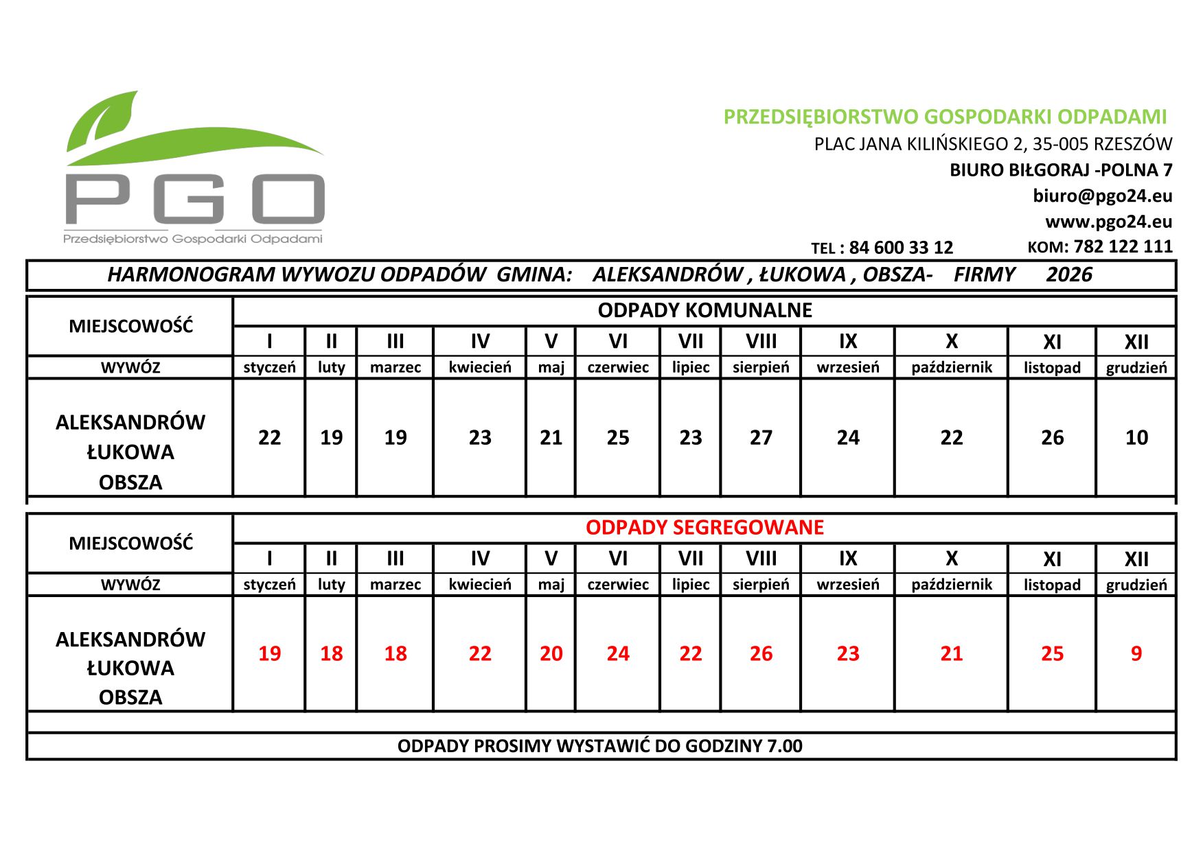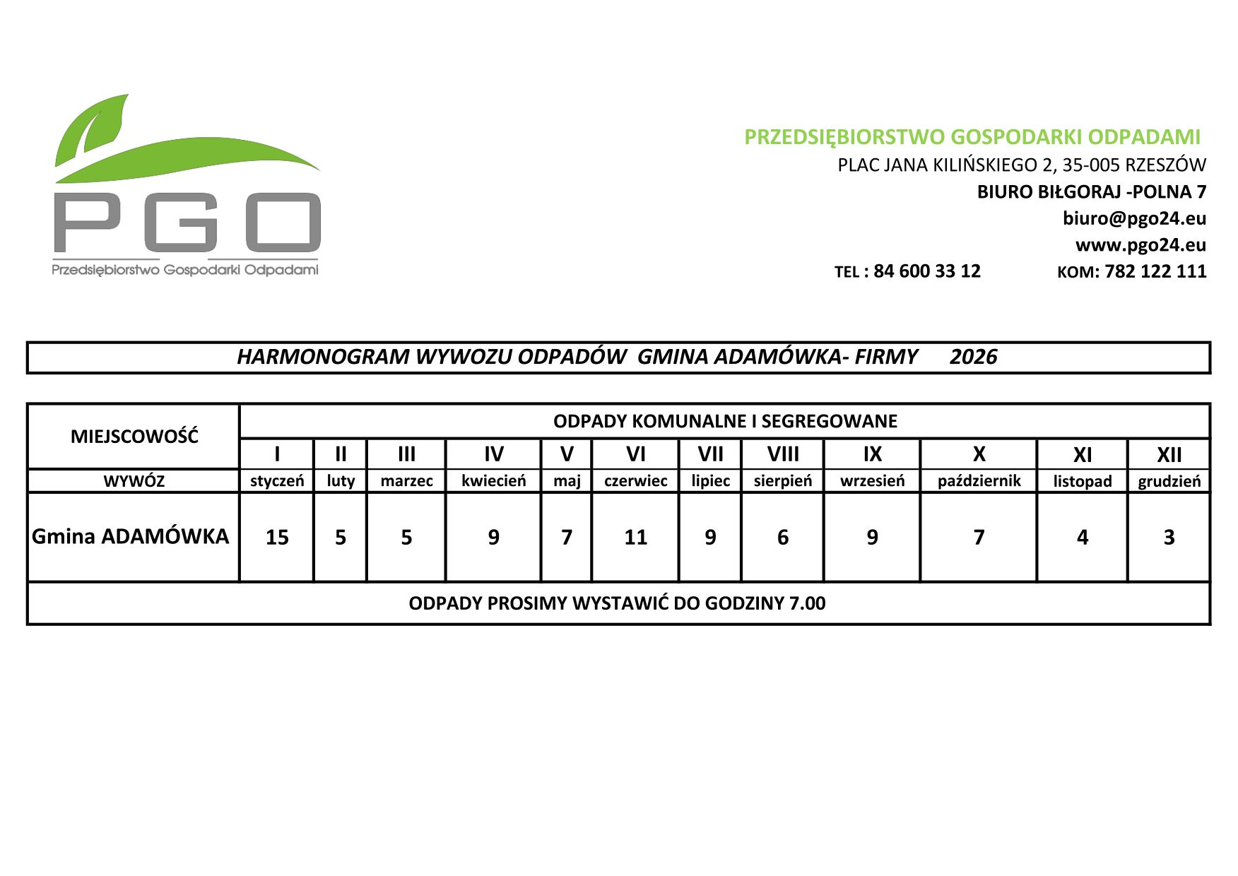 Harmonogramy Odbioru Odpadów 2021 r. Aktualne harmonogramy odbioru odpadów na rok 2025, z podziałem na gminy. Wybierz gminę: Gmina Adamówka Gmina Biszcza Gmina Aleksandrów Gmina Potok Górny Gmina Turobin Gmina ADAMÓWKA Gmina Obsza Gmina BISZCZA Gmina Potok Górny Gmina Turobin